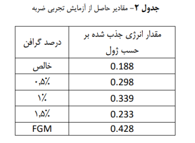 مقدار درصد وزنی نانو ذرات گرافن را جدا نموده و در درون کوره به مدت 2 ساعت در دمای 150درجه سانتیگراد گذاشته تا رطوبت احتمالی حذف شود. در شکل 1 نمونه نانو ذرات گرافن نشان داده شده است.