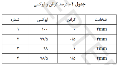 مشخصات نمونه های ساخته شده با درصدهای مختلف وزنی در جدول زیر ارائه گردیده است.